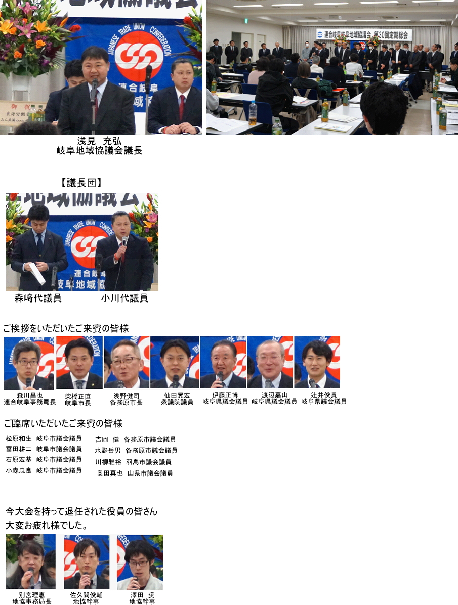 今回は役員選挙の年であり、新たな役員体制が確認され、新議長となった浅見充弘氏(JAM岐阜精機労働組合)より、力強い決意が述べられました。