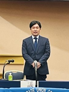 今年度は役員改選が行われ、2期4年、飛騨地協議長としてご尽力いただいた飛騨運輸労働組合 右田一義執行委員長が退任され、新たに、高山市職員労働組合連合会 山本貴央(やまもと たかお)執行委員長が飛騨地協議長に就任されました。