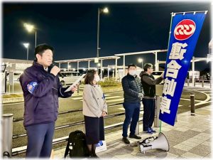 先の総会で新議長になった長尾伸也さんもマイクを握り、「安心して働ける雇用を、すべての人に」と話したほか、「解雇や雇止めに関する相談は“いこーよ、れんごーに”」と呼び掛けた。また連合推薦議員も駆けつけ、ガソリン減税に対する取り組みや、政府が進める衆院定数削減法案について触れ、「働く者の声をもっと聞くべきだ」と訴えた。