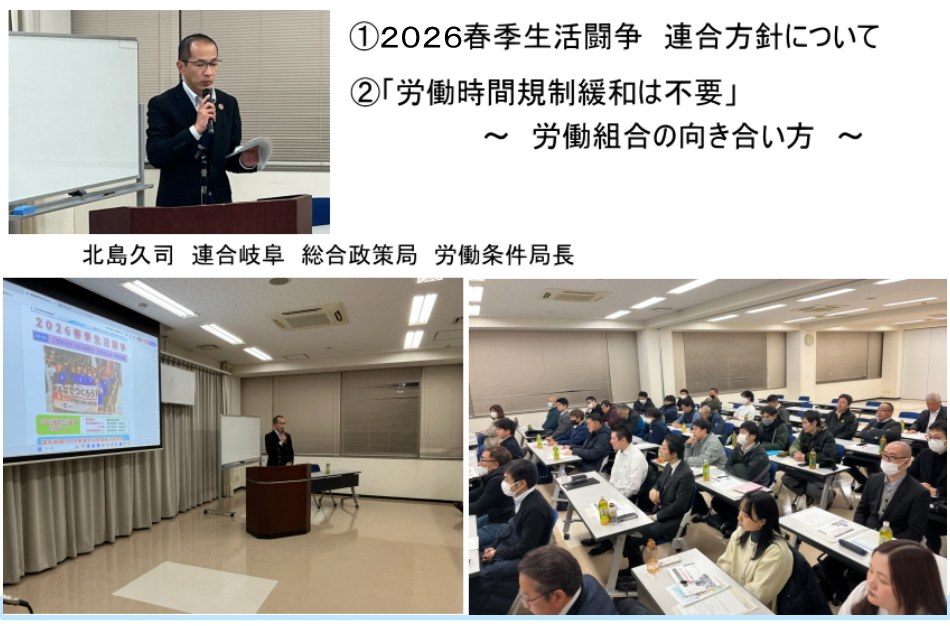 衆議院選挙の公示日と同日となりました、1月27日(火)18時30分から、「連合岐阜岐阜地域協議会2026春季生活闘争学習会」を開催しました。