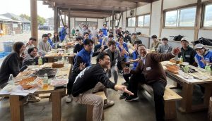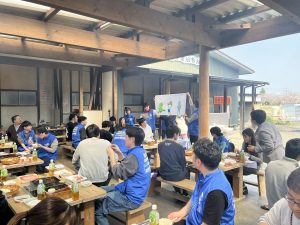 3月28日(土)、養老うまいもん広場で「西濃AQUA ~わいわいBBQ in 養老うまいもん広場~(若手交流会)」を開催し、16単組から39名(スタッフ含む)が参加しました。各テーブルでは自己紹介からスタートし、その後、西濃AQUAと連合岐阜青年委員が考えたクイズを行い、会話が広がる中で交流を深めることができました。