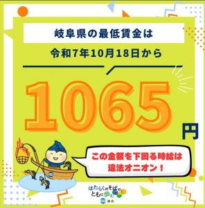 岐阜県は最低賃金1,065円、ぜひチェックを!
